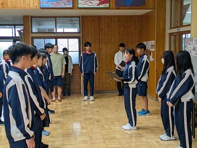 中学生の頃、私は得意教科に絶対の自信を持っていました。しかし、どうしてもテストで満点が取れない。毎回、決まって最初の方に出題される「基本問題」でミスをしてしまうのです。「なぜなんだろう」と本気で悩んだ時期もありました。そして、卒業から30年以上経った今日のこと。インフルエンザの予防接種を受けに行く際、問診票を記入し、記入漏れがないか確認したところ、女性限定の質問項目である「妊娠していますか?」という問いに、男性である自分が当たり前のように「いいえ」にチェックを入れていたのです。「ああ、こういうところだ……」と、満点が取れなかった原因がようやく分かりました。30年越しの謎が解けて、なんだかスッキリした気持ちです。ちなみに受付で間違えて記入してしまったことを伝えたところ、爆笑されました。 そんな私の話はさておき、本日12月17日(水)の3時間目、利尻高校3年生の7名が来校し、中学1年生に高校生による保健体育授業“ニュースポーツ(コーディネーショントレーニング)”を指導してくれました。高校生による丁寧な説明に、夢中に体を動かしている1年生がいました。その様子を写真でご覧ください。 また6時間目終了後、冬休み前清掃を実施しております。冬休み期間中に実施予定の体育館ワックスがけのため、今日は全校で体育館床清掃を実施しています。一生懸命清掃している鴛中生の様子をご覧ください。