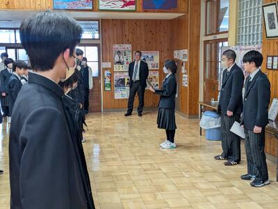 本日放課後、校内では「実用数学技能検定(数学検定)」が実施されました。数学は、答えが一つだからこそ、そこに至るまでのプロセスにその人の「努力」が表れます。今日まで問題集と格闘し、何度も計算をやり直してきた時間は、決して裏切りません。合格という結果も大切ですが、何より「自ら進んで検定に挑もう」と決意し、準備してきたその姿勢こそが、大きな成長の証であり、明日への一歩に繋がるはずです。受検した皆さんの努力が、大きな花を咲かせることを願っています。頑張れ!鴛中生!
