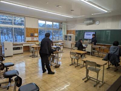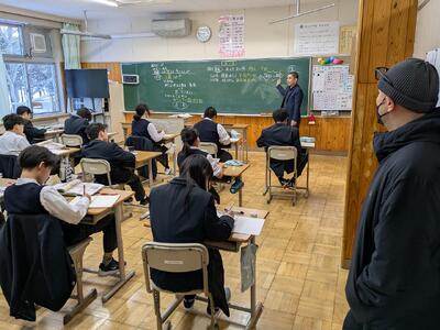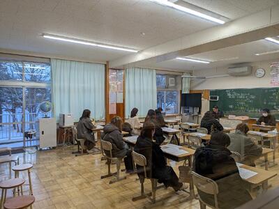 一日参観日・懇談会 投稿: 教頭 (16:17) 本日の一日参観日・懇談会【1,3年生】には、お忙しいところ、多くの方にご来校いただき、誠にありがとうございました。6時間目の授業の様子をご覧ください。 生徒下校後、懇談会を行いました。 今週は雪がたくさん降り、周囲の景色が一変しました。校舎の玄関先には、生徒が作ったと思われる可愛らしい雪だるまが置かれており、心を和ませてくれます。美術室前に飾られている作品と一緒にご覧ください。 Tweet -