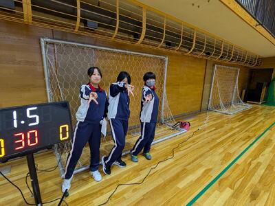 全校スポーツレク 投稿: 教頭 (12/16) 本日12月16日(火)から、待ちに待った全校スポーツがスタートしました!主催は保健体育常任委員会。種目は、全校生徒のアンケートで決めたバスケットボールです。昼休みを利用して、16日、17日、19日の3日間にわたり、学年対抗で熱い戦いが繰り広げられます。今日は、1年生と2年生の試合です。その様子を写真でどうぞ!! Tweet -