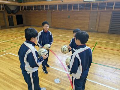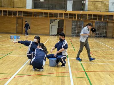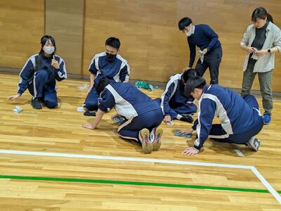 そんな私の話はさておき、本日12月17日(水)の3時間目、利尻高校3年生の7名が来校し、中学1年生に高校生による保健体育授業“ニュースポーツ(コーディネーショントレーニング)”を指導してくれました。高校生による丁寧な説明に、夢中に体を動かしている1年生がいました。その様子を写真でご覧ください。