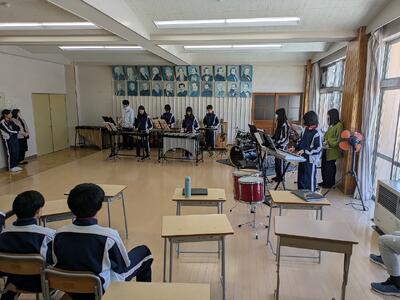 本日12月19日(金)の昼休み、音楽部主催『クリスマスミニ発表会』が行われました。音楽部のかっこよい姿を写真でご覧ください。ちなみに、発表会が終わったあと、誰からも言われることなくみんなで協力して音楽室を片付けている姿がありました。「鴛中生の主体性は素晴らしいな」と、思わず一人で感心していました。