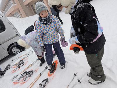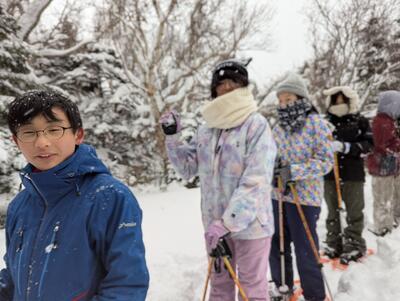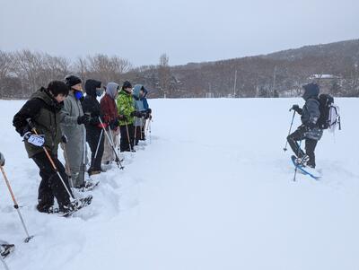 ❄スノーシュー❄ 投稿: 担当 (15:09) 昨日、1年生がスキー授業を行っているとき、2年生はスノーシューの授業を行いました。1回目となる昨日の授業では、スノーシューの履き方や歩き方を学び、鴛泊温泉の裏当たりを散策しました。初めてのスノーシューとなる人が多かった2年生ですが、すぐに歩き方を覚え、楽しく授業を終えました。来週は、甘露泉水まで歩く予定です。天気が良くなりますように☀ Tweet -