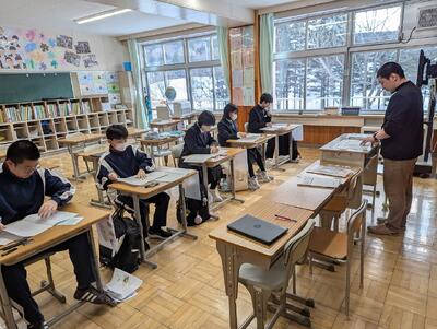 3年生社会の様子。年表づくりをしていました。