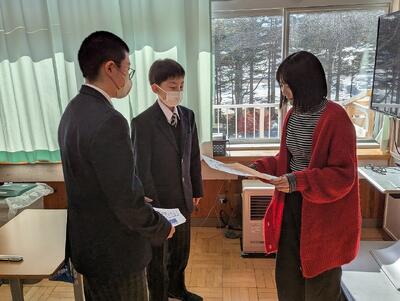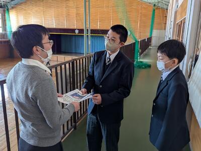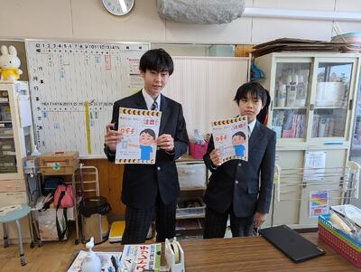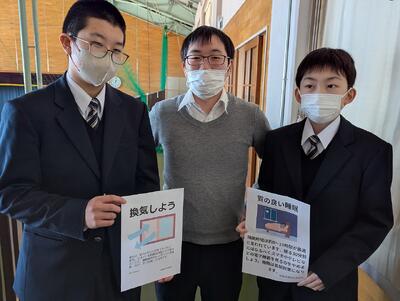 「なかなかのタイトルですが、決して怪しい者ではありません!」 本日、昼休みに活動する保健体育常任委員会のメンバーに同行取材してきました。各学級担任にお願いするため、各教室に向かう委員長と2年生ペアの手元には、『質の良い睡眠』『換気しよう』という自作ポスターが。全校生徒の健康を守ろうとする、頼もしい背中を写真でご覧ください。