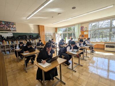 とはいえ、試験。朝から3年生は「気合い」が入っていたようです。朝の挨拶にもいつもと違う緊張が伝わっていたようです。これまでの学びがどれだけついているかな?問題に挑戦することで「今の自分」が分かってくると思うのです。中には「いつもより勉強してきた!」という声、やはりそこは3年生、頼もしい(?)ですね。午後からでしたので、塩ラーメンのおいしさの余韻に浸る余裕もなく、タブレットを用意しいざ!集中を切らすことなく奮闘していました!