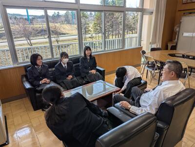 応接椅子にみんなで座って、「人生で一番やりたいこと」、「好きなゲーム」など会話の柱となるお題を出してくれて、にぎやかで楽しい時間を過ごしました。入学して一週間足らずですが、少しずつ中学生らしさも出始めきて、これからが楽しみな1年生です。