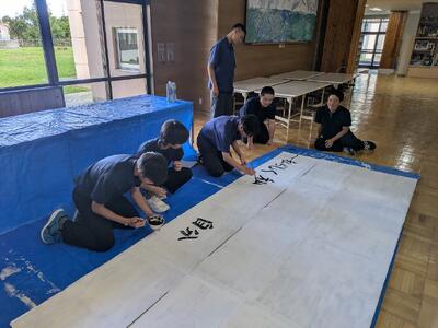 全校合唱のパート練習が終了後、鴛中生全員で会場設営を行いました。