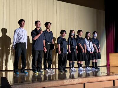 本日9月26日(金)の6時間目、終業式が行われました。各学年・生徒会本部から前期の反省と後期への目標が発表されました。それぞれが自分たちの言葉で、しっかりと伝えていたと思います。私からは、目に見える結果も大切ですが、それと同じくらい、いやそれ以上に価値があるのが、実は「失敗したこと」や「上手くいかなかったこと」の中に詰まっている話をしました。後期は前期で得た「力」をさらに大きくするチャンスです。目標をしっかり見据え、充実した学期にしていきましょう。まずは、学校祭に全力で挑んでいきましょう。