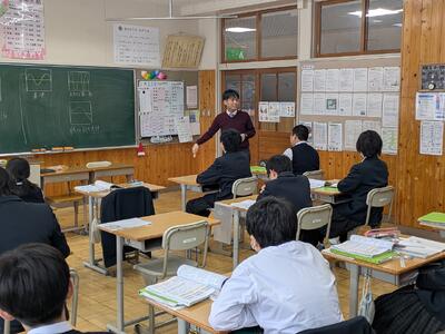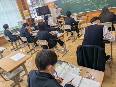 ちなみに当日は1年生社会の授業見学と理科の体験授業を実施する予定になっております。このブログを作成している最中、1,2年生が社会と理科を行っていたので授業の様子を写真で取ってきました。