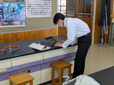 今日は3年生の理科の授業を紹介します。 3年生はすでに教科書の内容をすべて終え、現在は「学びのまとめ」として、グループや個人で理科の実験動画の制作に取り組んでいます。自分たちで実験の様子を撮影し、その手順や結果を他の人へ分かりやすく解説する形式です。他者に説明ができるということは、実験内容を深く、正しく理解している証でもあります。試行錯誤しながら準備を進める生徒たちの表情は真剣そのもの。今回の取組が、間近に迫った文協テストや高校入試の本番にもつながることを期待しています。頑張れ、3年生!