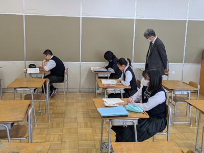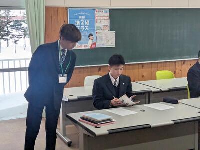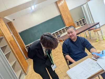 3年生は他学年の先生方と面接練習を行いました。普段練習している先生とは違う視点からの質問もされ、返答に困ったという声が聞こえてきました。また、面接練習を踏まえて、アドバイスもたくさんいただき、次の練習に生かそうという振り返りを行っている様子がみられました。人によっては、初めて集団面接の練習も行われ、個別とは違う集団面接の空気に難しさを感じていました。今後は受検に向けて管理職の先生による面接練習があります。本番に向けて頑張りましょう。
