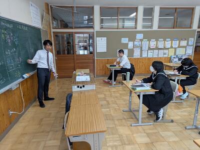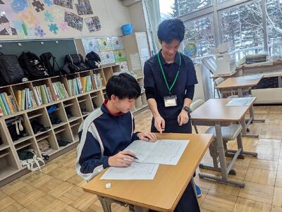 数学や英語の授業では、生徒たちの輪の中に入って丁寧にアドバイスを送るなど、学習をしっかり支えてくれました。一度きりの交流で終わらず、こうしてまた島に戻ってきてくれるのは本当に嬉しいことです。