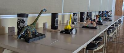 〇美術室前には生徒の作品が飾られていました