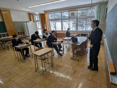 本日2月17日(火)、宗谷教育局より 義務教育指導監 千代隆志様をお迎えし、学校経営指導訪問(2次訪問)が行われました。利尻富士町教育委員会からは、教育長の吉田秀昭様と次長の山谷文人様にもご臨席を賜りました。公務ご多忙の折、本校のためにこうして直接お話をさせていただく機会をいただきましたこと、心より感謝申し上げます。